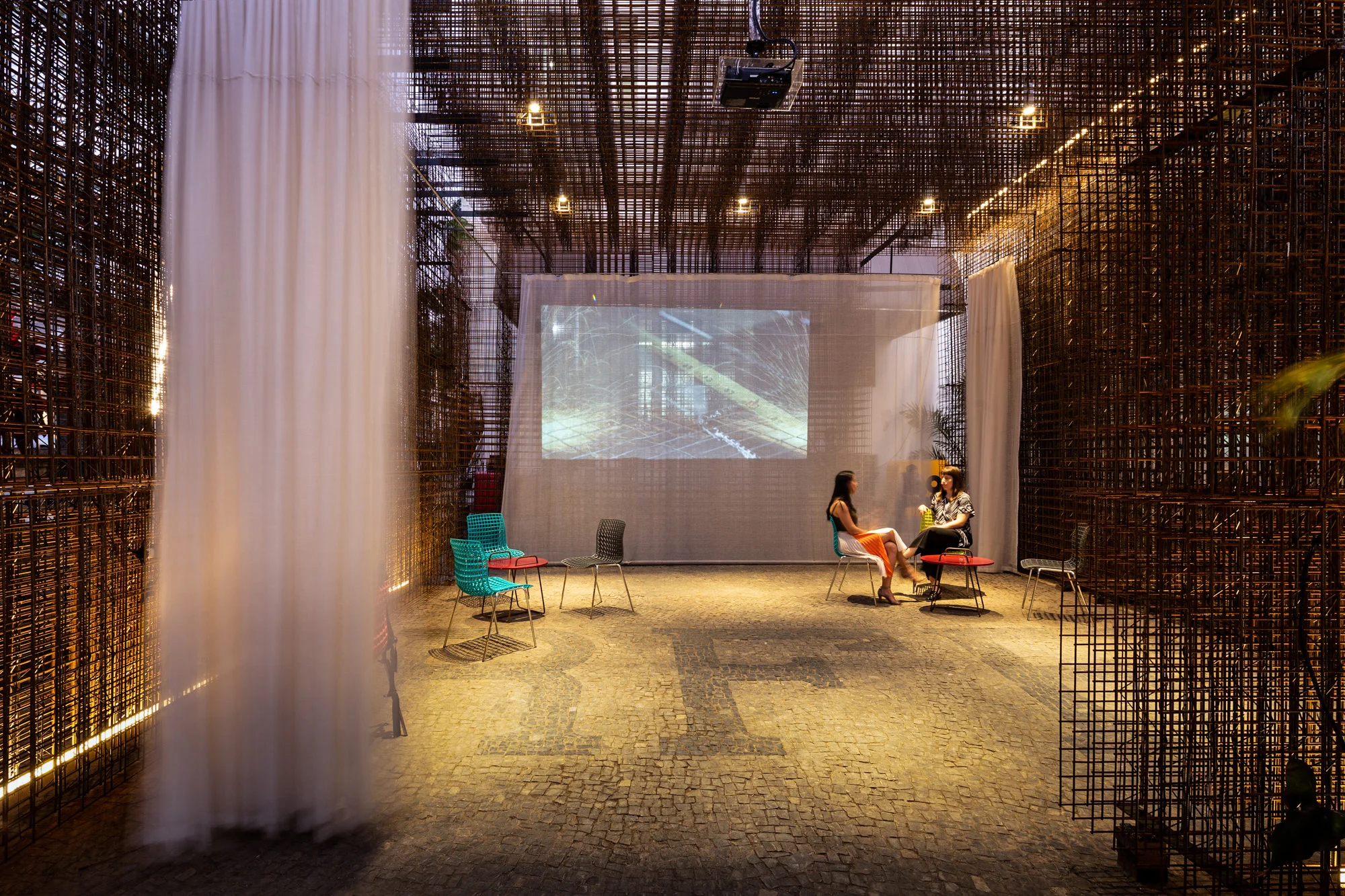 O Pavilhão ofereceu aos visitantes da mostra um lugar de pausa, intervalo e também acolhimento durante as palestras que aconteceram neste espaço multiuso.