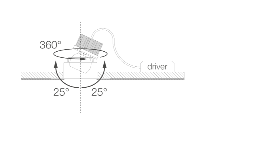 Projetor de embutir orientável sem moldura para forro.