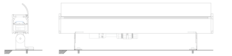 Corpo em alumínio extrudado, acabamento em pintura eletrostática poliéster microtexturizada. Óptica em Policarbonato metalizado, difusor em vidro cristal temperado. Vedações em silicone.