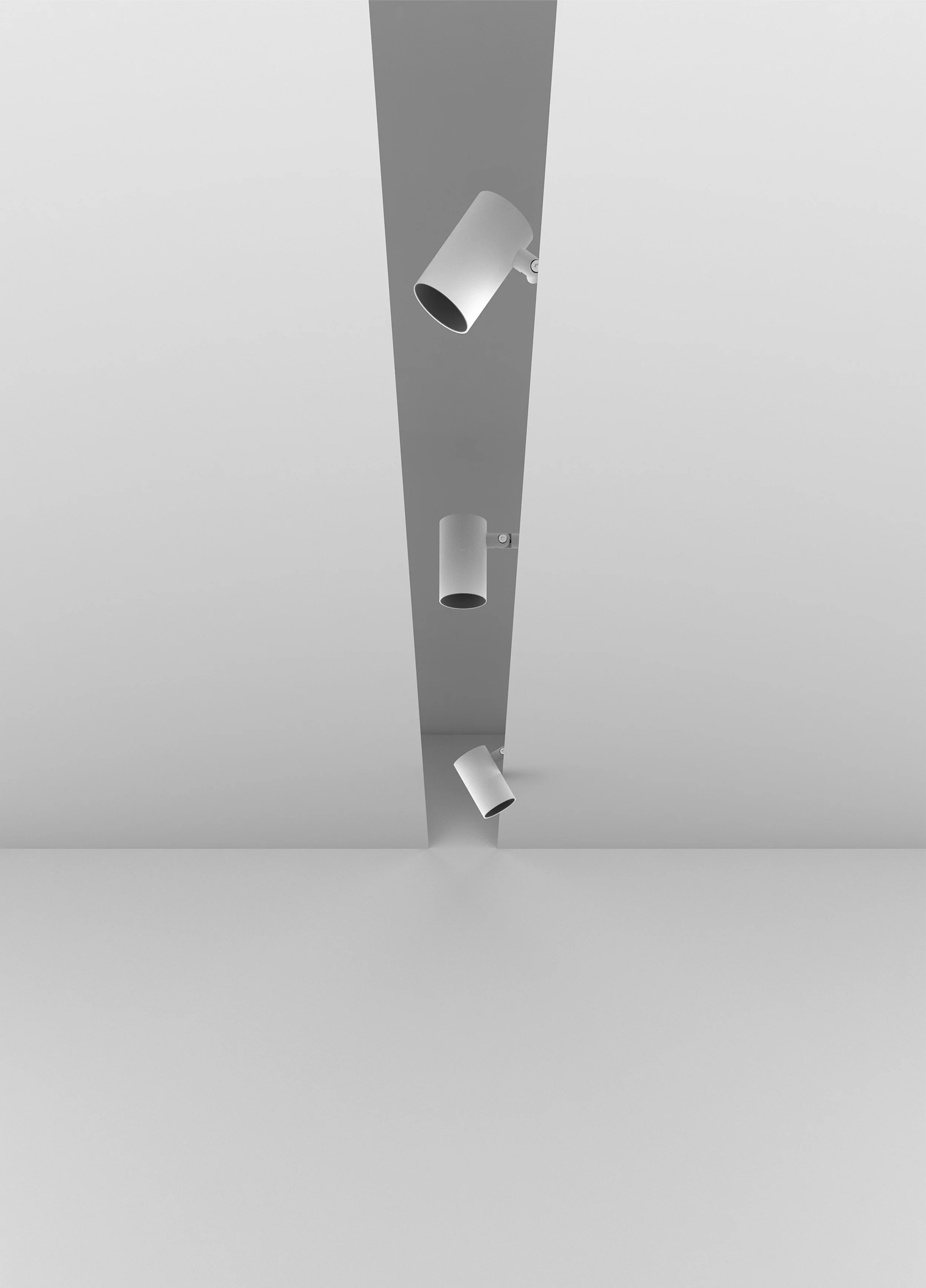 Projetor de sobrepor orientável LED para trilho em sistema ATRIA.