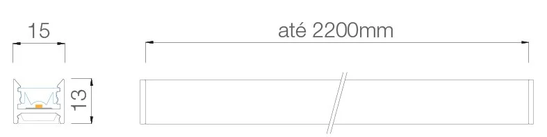 Comprimento do perfil: múltiplo de 50mm, total até 2200mm. Acrescentar 4mm à medida total final com o acréscimo das tampas do perfil.