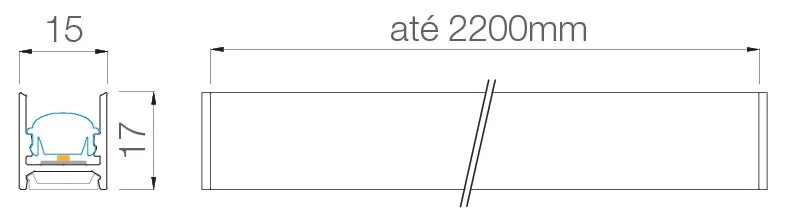 Comprimento do perfil: múltiplo de 50mm, total até 2200mm. Acrescentar 4mm à medida total final com o acréscimo das tampas do perfil.