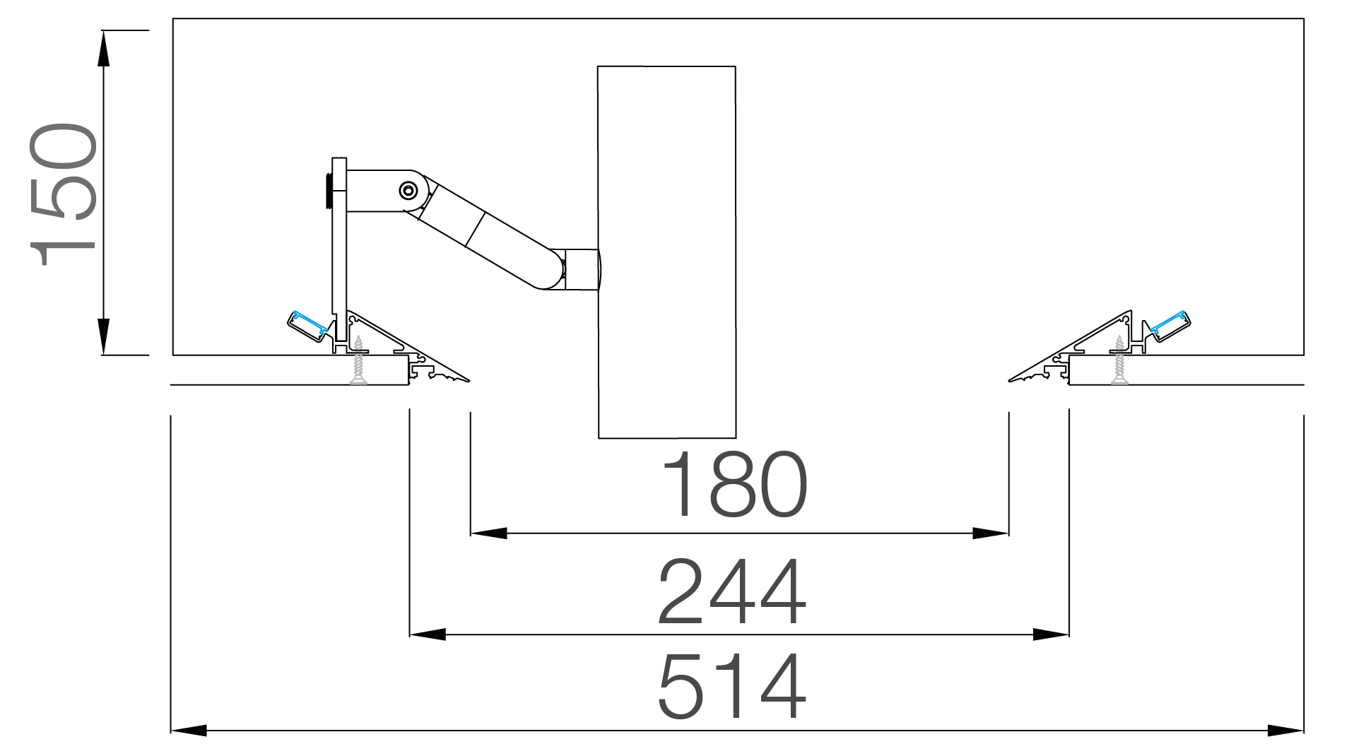 Comprimento da peça de cabeceira inteiriça para sanca com abertura de 150mm.