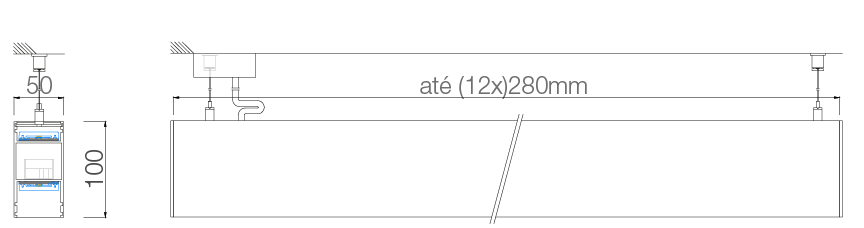 Sistema linear LED com difusor ou lente - pendente up-downlight.