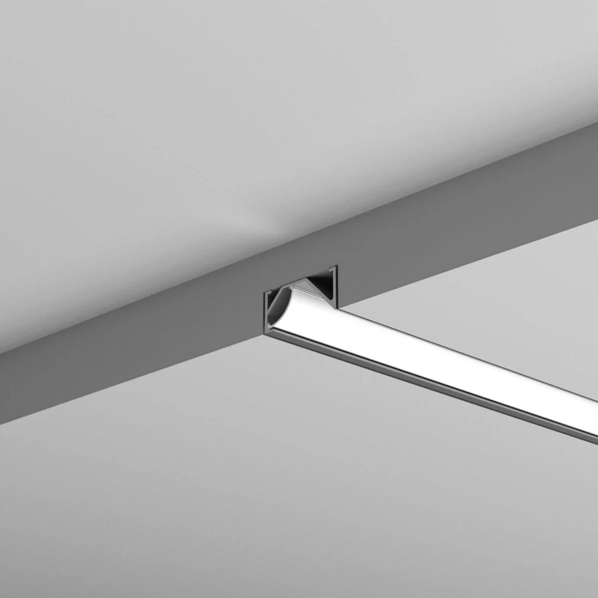 Perfil retangular, emissão de luz 45º, com difusor translúcido.